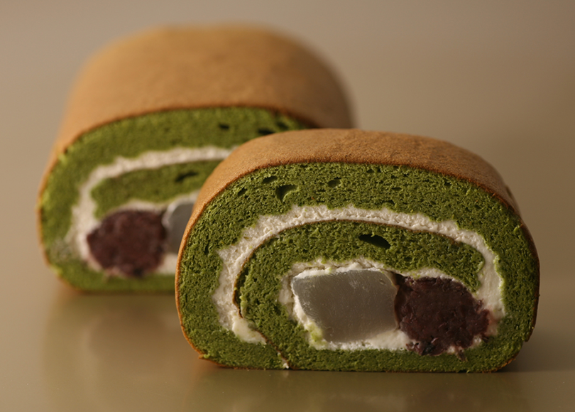 和束産の宇治抹茶を使い中には自家製わらび餅とあんこが入ったロールケーキです。